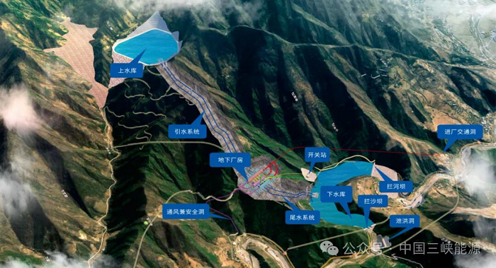 項(xiàng)目位于陜西省商洛市山陽(yáng)縣,依托自然地勢(shì),電站由上水庫(kù)、輸水系統(tǒng)、地下廠房、開關(guān)站、下水庫(kù)等構(gòu)成,安裝4臺(tái)單機(jī)容量30萬(wàn)千瓦的可逆式水泵水輪機(jī)組,在電力富余時(shí)把低處的水抽到高處儲(chǔ)能,在用電高峰時(shí)把高處的水放下發(fā)電保供,實(shí)現(xiàn)“調(diào)峰填谷”,助力電網(wǎng)平穩(wěn)運(yùn)行。